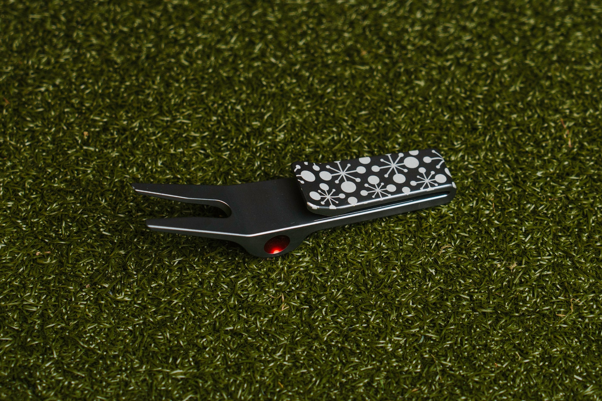Scottyn uusin holiday clip pivot -työkalu, jossa on laserkaiverrettu teollinen lumihiutalekuosi, vangitsee kauden hengen pienellä punaisella maalitahroilla, jotka sopivat täydellisesti tarkasti milled ja anodisoidun Bright Dip Light Gray -viherkorjaustyökalun sävyyn.